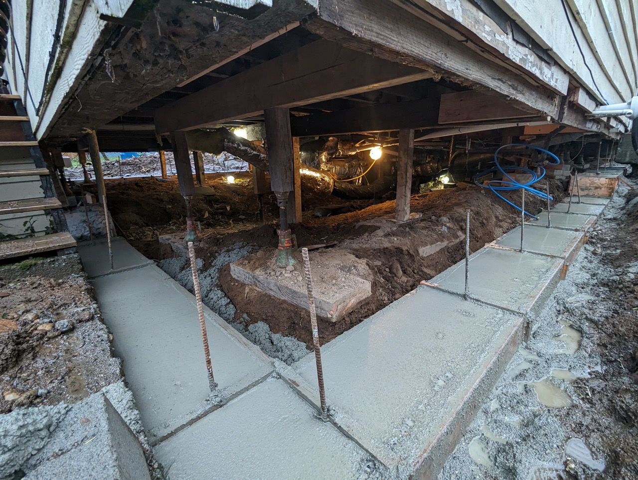 Prior to completing a bathroom remodel, we needed to fix a failing foundation. As with many homes in the Olympia area, this one was built long ago. Over time, the foundation crumbled, leaving the corner of the home 6 inches out of level. Using a system of jacks, we lifted and leveled the home, demolished the failing foundation, formed and poured a replacement foundation, and set the new home down.